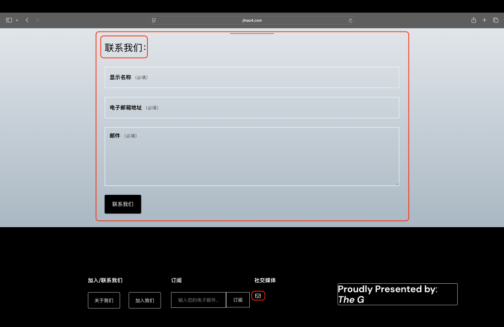 - 下滑到本页页尾,点击社交媒体栏中的邮件标志📧